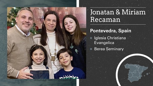 I serve the Lord as a pastor in the Christian Evangelical Church of Pontevedra, Spain, and as a professor and dean of students at Berea Seminary, a ministry of the Evangelical Church of Leon. I am married to Miriam, and we have three kids, Emma, Dana and Eric.